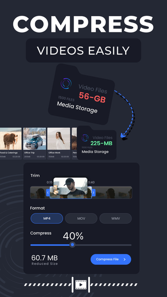 このアプリの主な特徴の1つは、使いやすいインターフェースです。ビデオのサイズを変更したり圧縮したりすることが簡単にできます。ギャラリーから任意のビデオを選択し、スライダーを使用してビデオのサイズを設定し、縮小レベルを調整することができます。また、ビットレートを変更し、ビデオのサイズを品質を損なうことなく縮小することもできます。